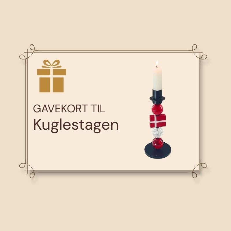 Gavekortet kan bruges på hele shoppen og giver friheden til at vælge mellem både start-sæt, ekstra kugler og tilbehør. På den måde kan modtageren designe en lysestage, der passer til deres hjem og anledning – om det er til jul, fødselsdag, bryllup eller bare hyggelige hverdage.
