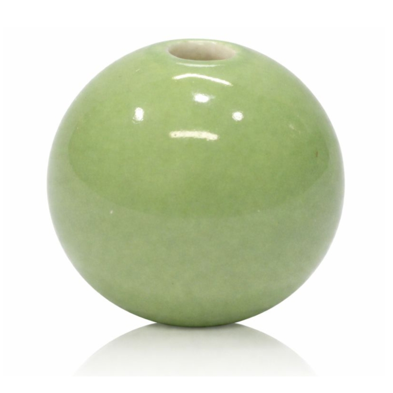 Grøn porcelænskugle er en del af Kuglestagens modulopbyggede system. Kuglerne bruges som opbygningselementer i stagerne og kombineres med baser, stænger og andre dele, alt efter hvordan stagen sammensættes.