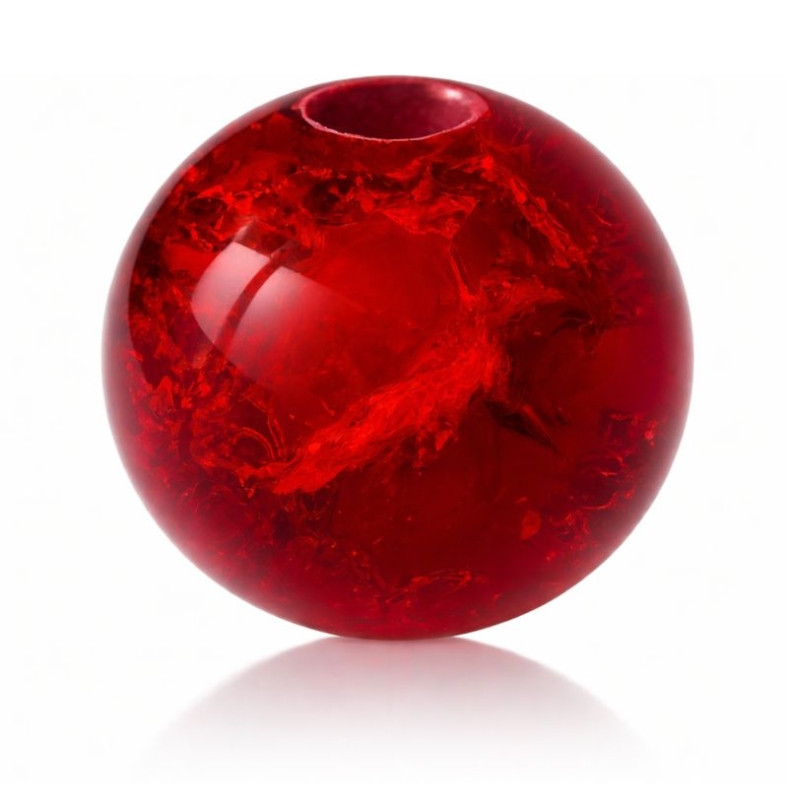 Den røde knuste glaskugle kan kombineres med alle kugler, ringe, sten og materialer fra Kuglestagens sortiment samt alt tilbehør fra MY-Candle / Kuglestagen.