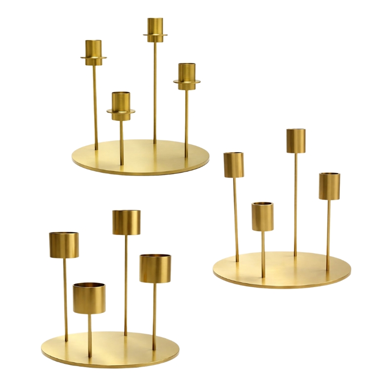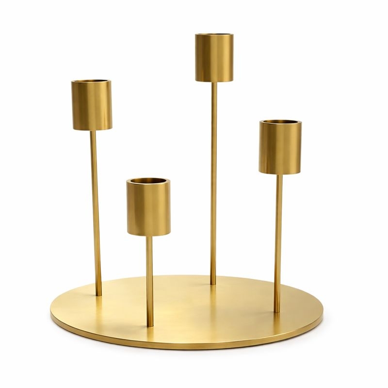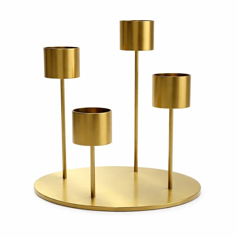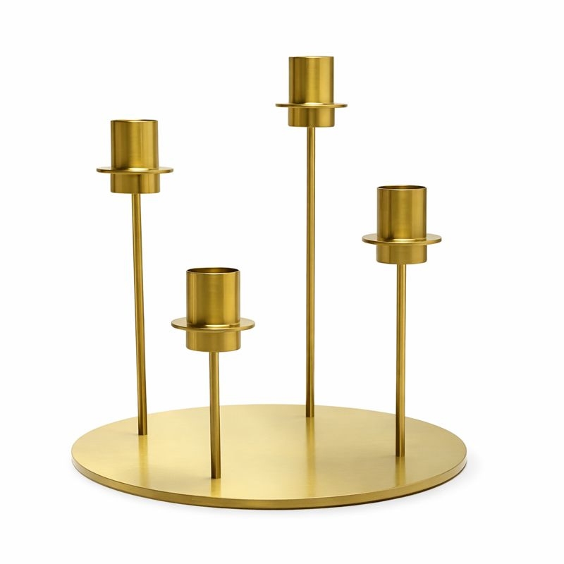 ORBIS messingstage er en del af Kuglestagens modulopbyggede system og er designet som en rund bordlysestage med fire stager i stigende højder.
